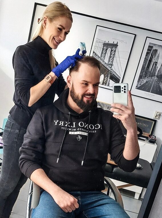 Mikropigmentacja skóry daje natychmiastowy efekt i właśnie to pozwala jej konkurować z innymi zabiegami zwalczającymi łysienie. Właśnie dzięki zauważalnym estetycznym efektom wpływa na poprawę Twojego samopoczucia. Pamiętaj, że mikropigmentacja to metoda, która nie przywraca naturalnego owłosienia, ale w nieinwazyjny sposób odzwierciedla cebulki włosów, tak aby wyglądały jak te naturalne.